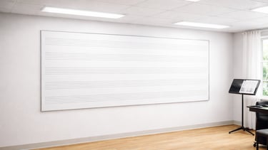 Adicional con un tercer proceso de impresión con tinta porcelana, acabado musical con 5 líneas de pentagrama y una separación de 2.50 cm cada una.